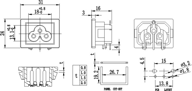 IEC插座系列,小型八字插座,米老鼠插座 ,梅花座等多種規格,產品通過UL VDE CCC CB等認證,常見于家用儀器設備,小家電等