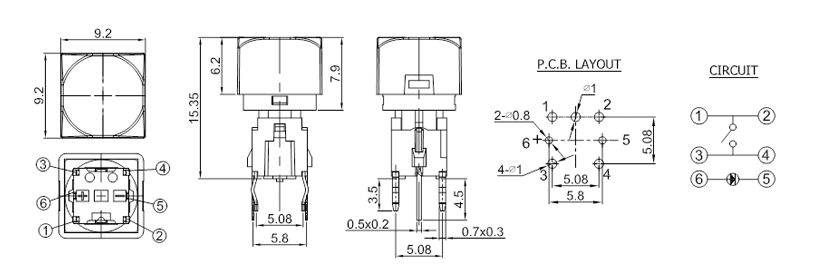 Operating Force:180±50gf or 250±50gl